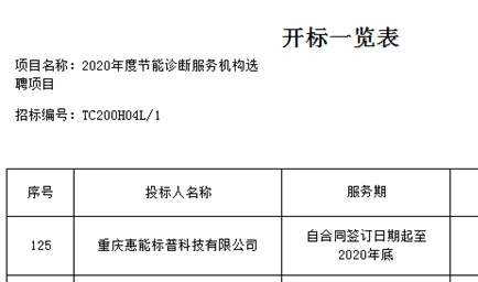 熱烈慶祝重慶惠能標(biāo)普科技有限公司成功中標(biāo)國(guó)家工信部2020年度節(jié)能診斷服務(wù)機(jī)構(gòu)選聘項(xiàng)目,我公司將更好的為廣大政府機(jī)關(guān)、企事業(yè)單位提供節(jié)能診斷服務(wù)。