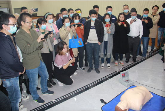 接下來的交流中,惠能標普資深專家唐邦富總工程師(主任醫(yī)師,原重慶市衛(wèi)生監(jiān)督所副所長,從事職業(yè)衛(wèi)生評價工作40余年),主授對用人單位職業(yè)病防治法定責任,及其相關法律法規(guī)的歷年演變,在結合個別重大案例的基礎上做出了精彩的講解;公司職業(yè)病高級評價專家艾國平博士(原第三軍醫(yī)大學預防醫(yī)學系教授、碩士生導師、執(zhí)業(yè)醫(yī)師、美國南加州大學洛杉磯兒童醫(yī)院博士后、全軍健康教育專家、中華預防醫(yī)學健康風險評估與控制青年委員會委員、重慶社區(qū)和農(nóng)村衛(wèi)生協(xié)會慢病專委會副主任委員、重慶市院士專家科普團講師、重慶健康研究會理事)通過理論講解、視頻展示以及現(xiàn)場實操等形式,展現(xiàn)了心肺復蘇等應急救援措施,并讓代表親自實操,切實掌握急救技能。
