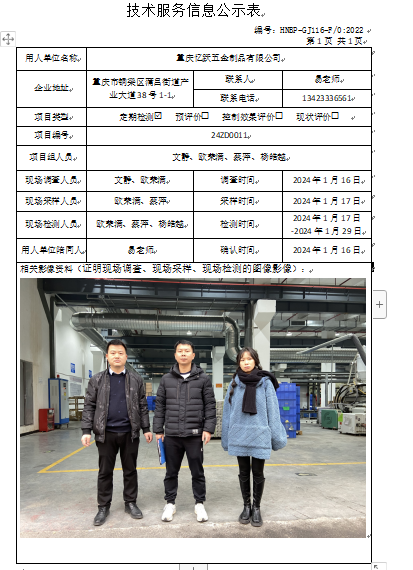 重慶憶躍五金制品有限公司定期檢測項目公示