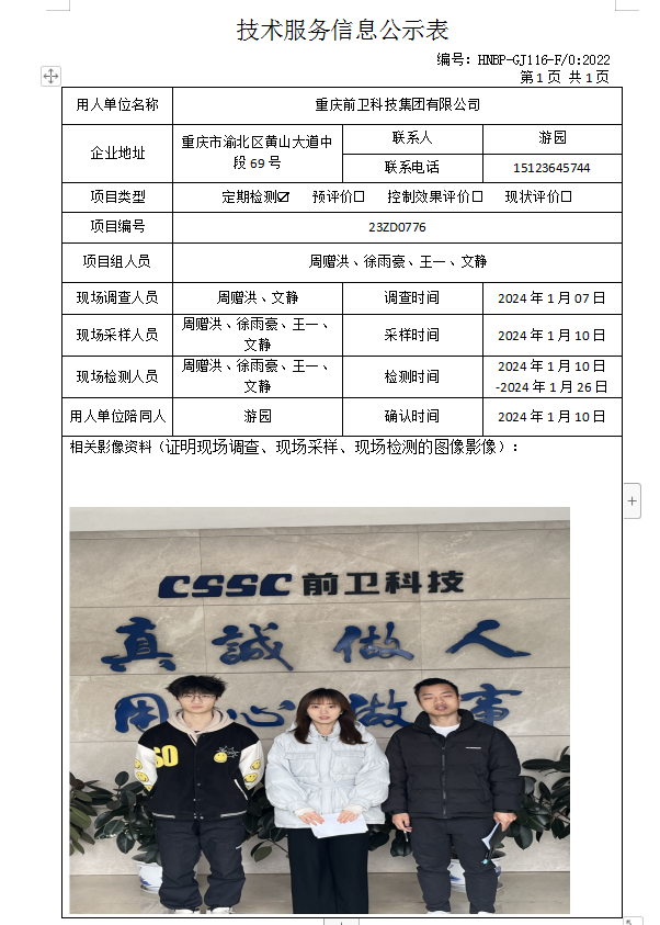 重慶前衛(wèi)科技集團有限公司定期檢測項目公示