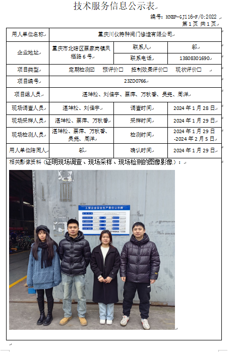 重慶川儀特種閥門修造有限公司定期檢測項(xiàng)目公示