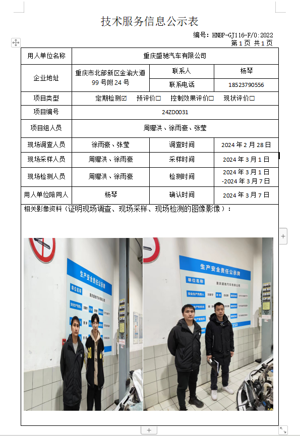 重慶盛馳汽車有限公司定期檢測項目公示