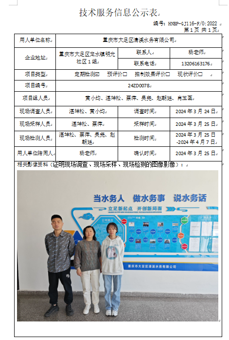 重慶市大足區(qū)清溪水務(wù)有限公司定期檢測(cè)項(xiàng)目公示