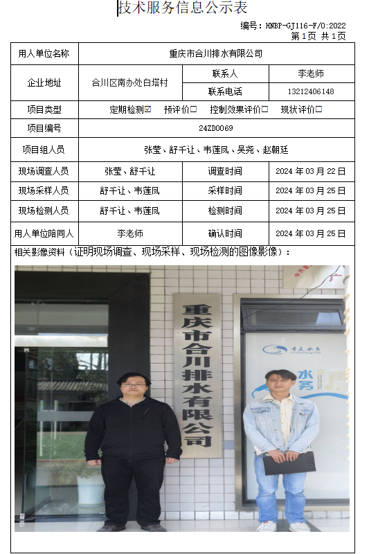 重慶市合川排水有限公司定期檢測項(xiàng)目公示