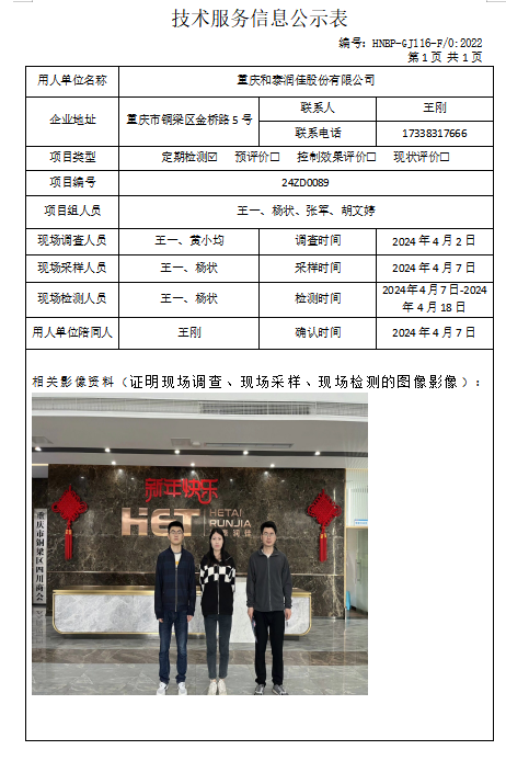 重慶和泰潤佳股份有限公司項目公示