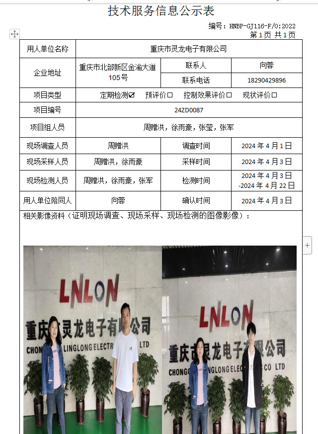 重慶市靈龍電子有限公司定期檢測項目公示