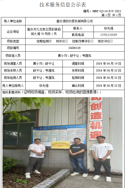 重慶皇馳汽車部件有限公司定期檢測項(xiàng)目公示...