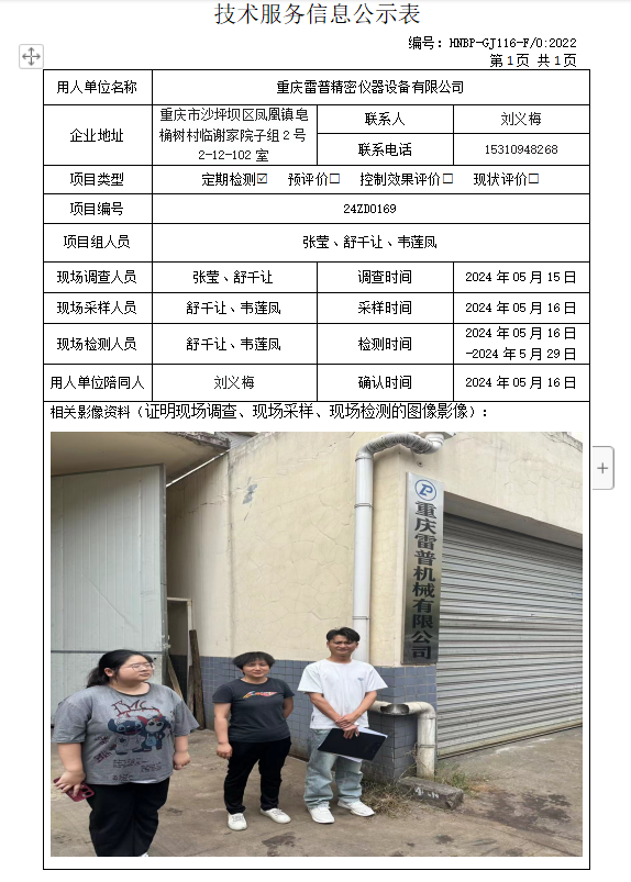 重慶雷普精密儀器設(shè)備有限公司定期檢測項目公示