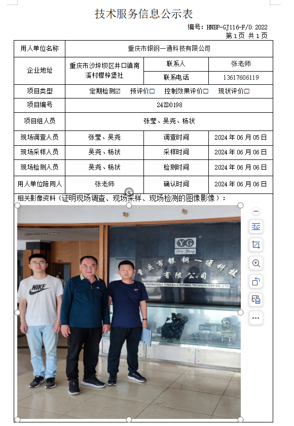 重慶市銀鋼一通科技有限公司定期檢測項目公示