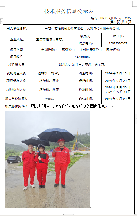 中石化石油機(jī)械股份有限公司天然氣技術(shù)服務(wù)分公司定期檢測(cè)項(xiàng)目公司
