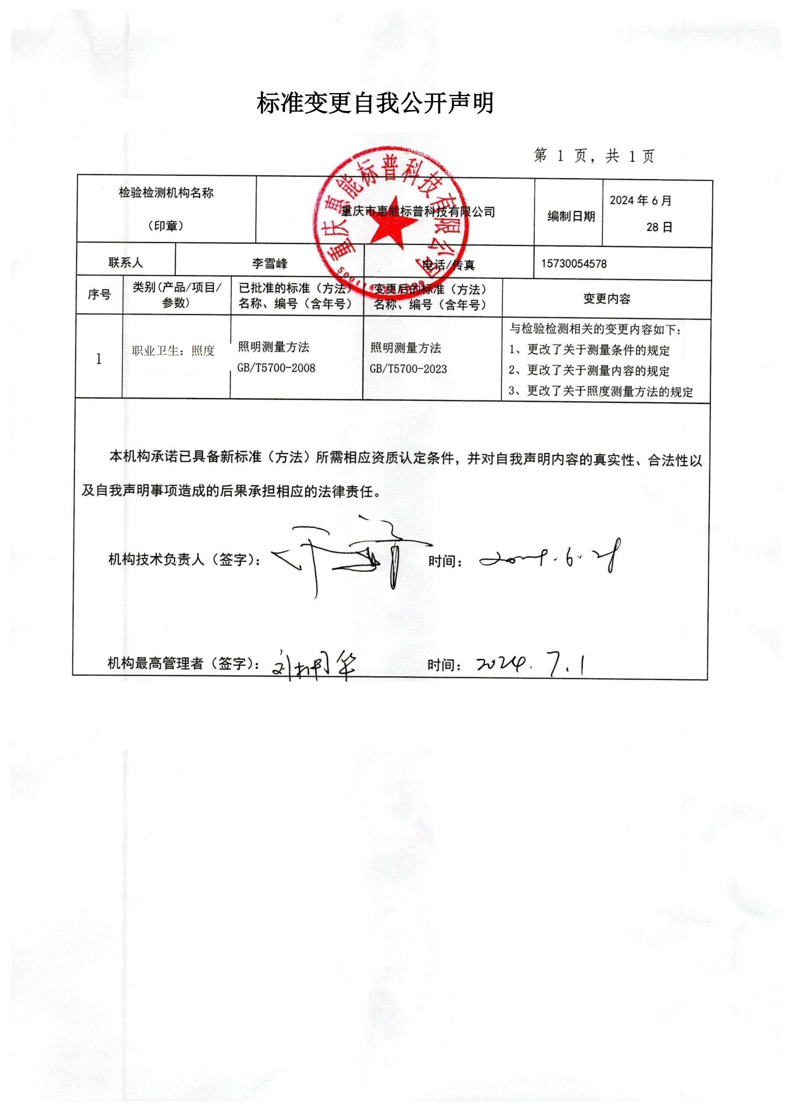 方法變更的自我聲明