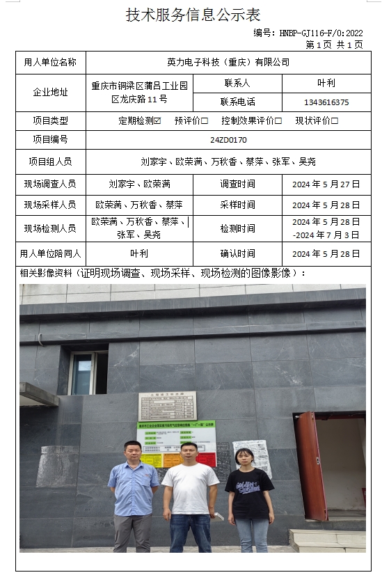 英力電子科技(重慶)有限公司定期檢測項(xiàng)目公示
