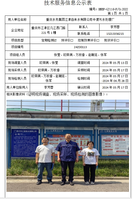 重慶水務(wù)集團江津自來水有限公司中渡污水處理廠定期檢測項目公示