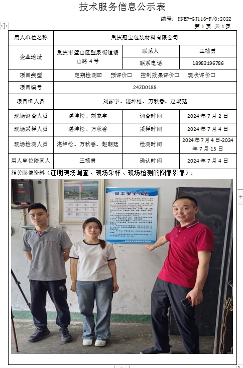 重慶冠寶包裝材料有限公司定期檢測(cè)項(xiàng)目公示
