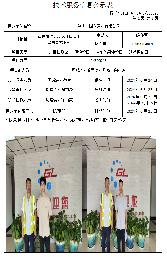 重慶金珈玉建筑工程有限公司定期檢測項(xiàng)目公...