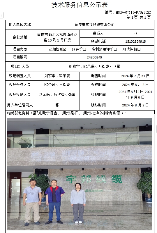 重慶市宇邦線纜有限公司定期檢測項目公示