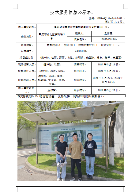 福安藥業(yè)集團(tuán)慶余堂制藥有限公司照母山廠區(qū)定期檢測(cè)項(xiàng)目公示