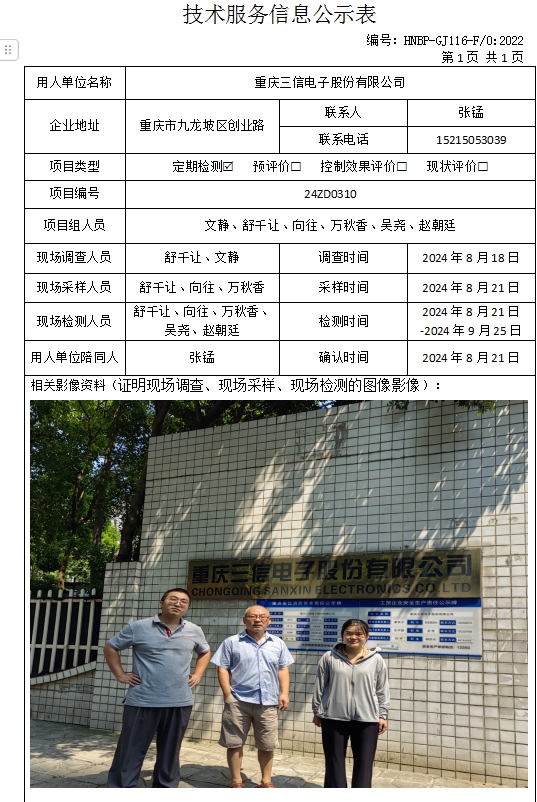 重慶三信電子股份有限公司定期檢測(cè)項(xiàng)目公示