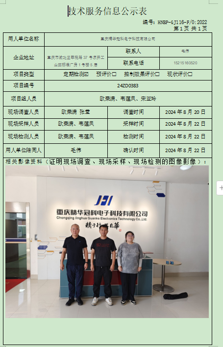 重慶精華冠科電子科技有限公司定期檢測(cè)項(xiàng)目公示