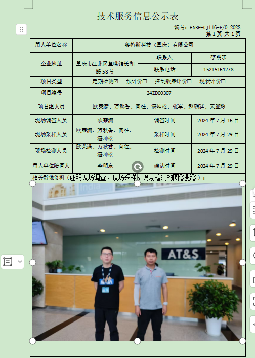 奧特斯科技(重慶)有限公司定期檢測(cè)項(xiàng)目公示