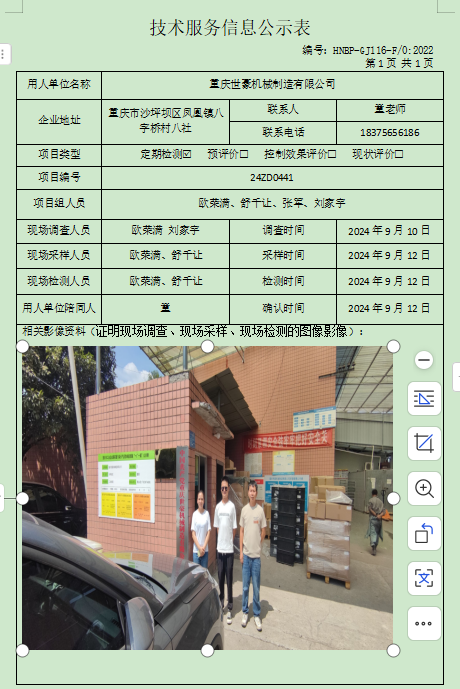 重慶世豪機(jī)械制造有限公司定期檢測(cè)項(xiàng)目公示
