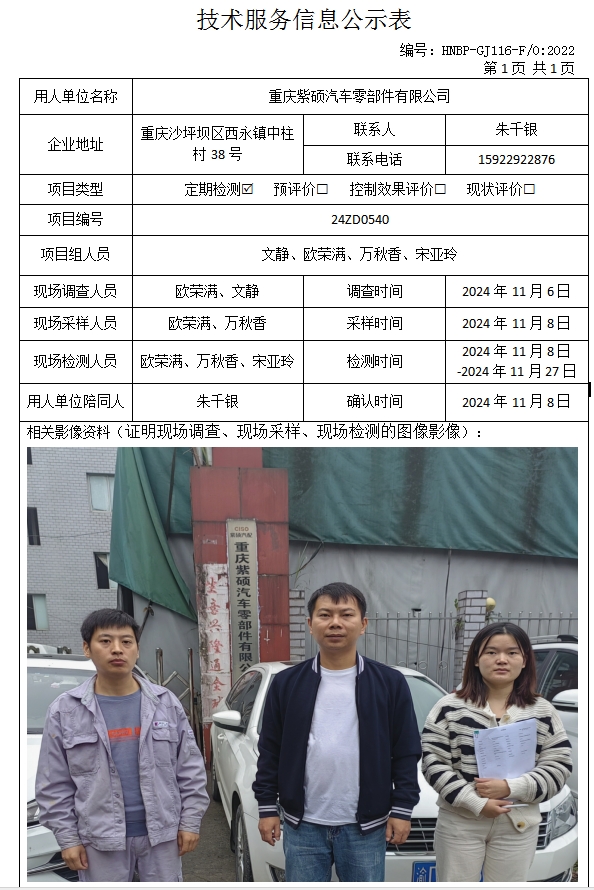 重慶紫碩汽車零部件有限公司定期檢測項目公示