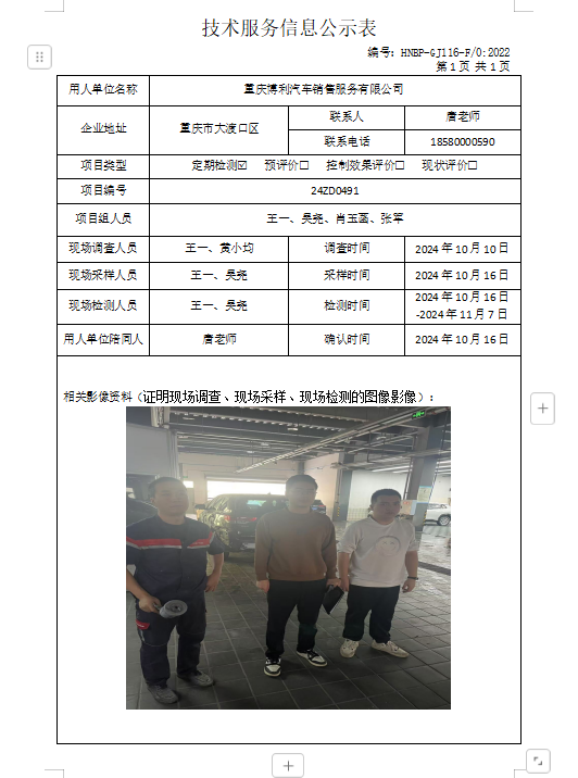 職業(yè)衛(wèi)生檢測項目公示