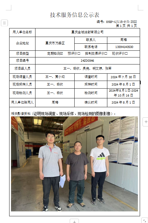 職業(yè)衛(wèi)生檢測(cè)項(xiàng)目公示