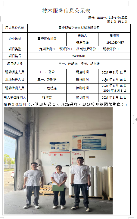 職業(yè)衛(wèi)生檢測項目公示