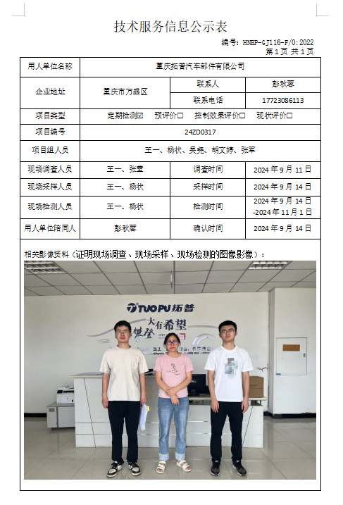 職業(yè)衛(wèi)生評價(jià)項(xiàng)目公示