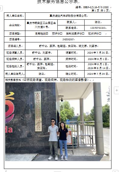 重慶凌達汽車織物股份有限公司定期檢測項目公示