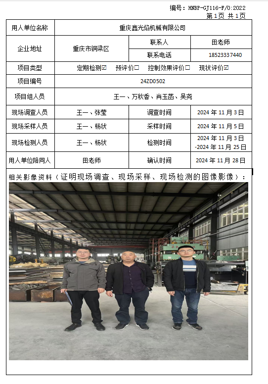 重慶市大正儀表股份有限公司定期檢測項目公...