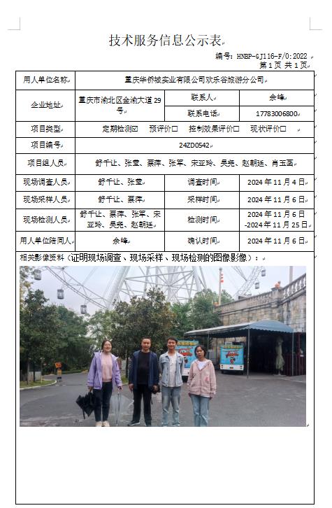 重慶華僑城實(shí)業(yè)有限公司歡樂谷旅游分公司定期檢測(cè)項(xiàng)目公示
