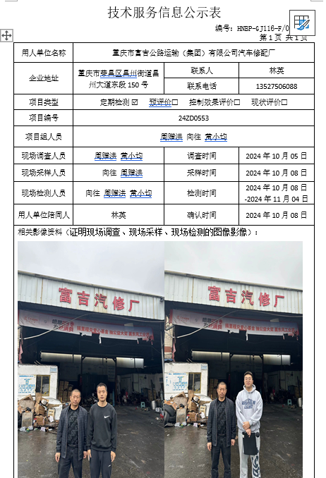 重慶市富吉公路運輸(集團)有限公司汽車修配廠定期檢測項目公示