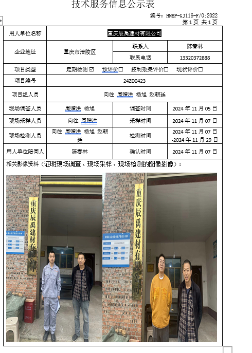 重慶辰禹建材有限公司定期檢測(cè)項(xiàng)目公示