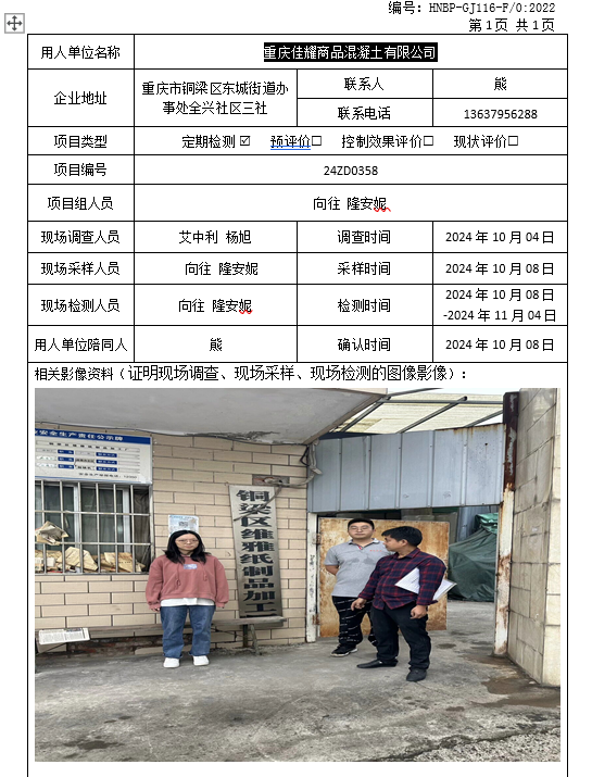 重慶佳耀商品混凝土有限公司定期檢測項目公示