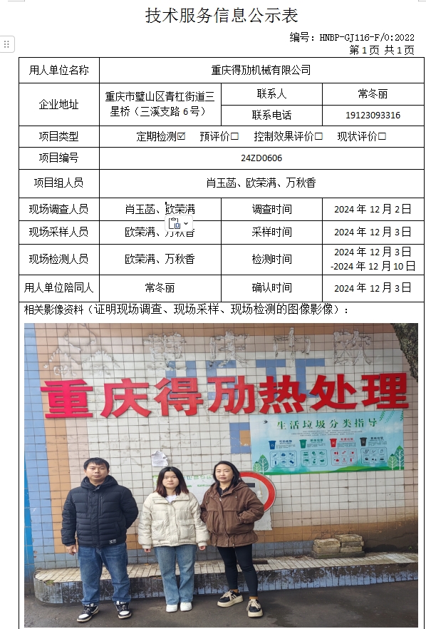 重慶九福汽車零部件有限公司定期檢測(cè)項(xiàng)目公...