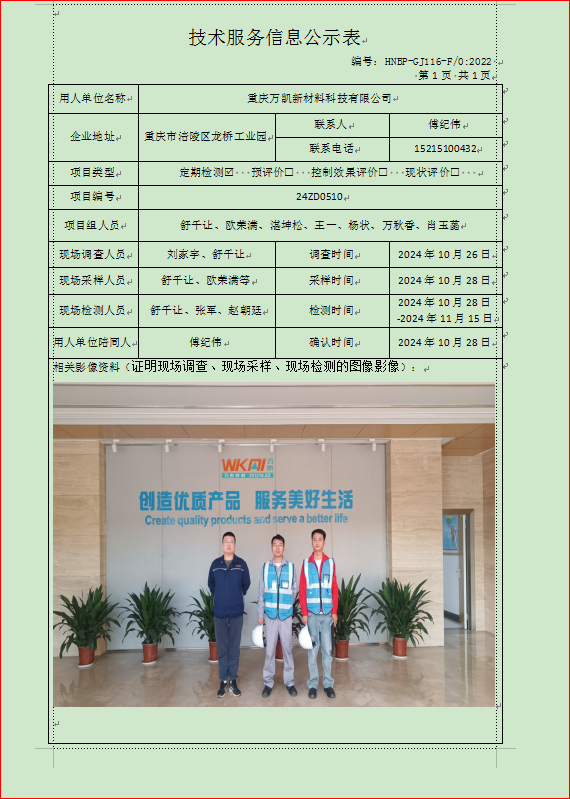 重慶萬凱新材料科技有限公司定期檢測項目公示