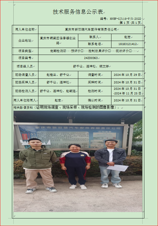 重慶市新雙雄汽車配件有限責(zé)任公司定期項目公示