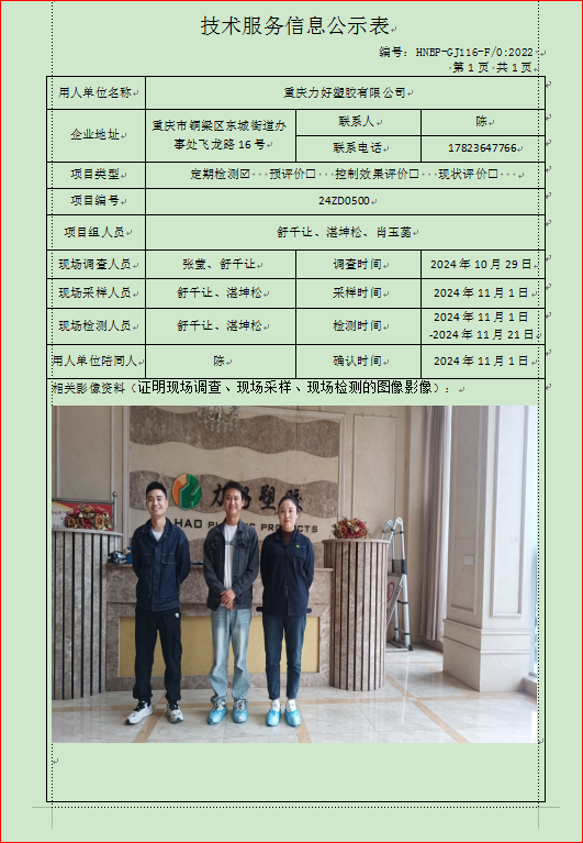 重慶精鴻益科技股份有限公司定期檢測項(xiàng)目公...