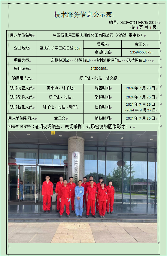 中國石化集團(tuán)重慶川維化工有限公司(檢驗(yàn)計(jì)量中心)定期檢測項(xiàng)目公示