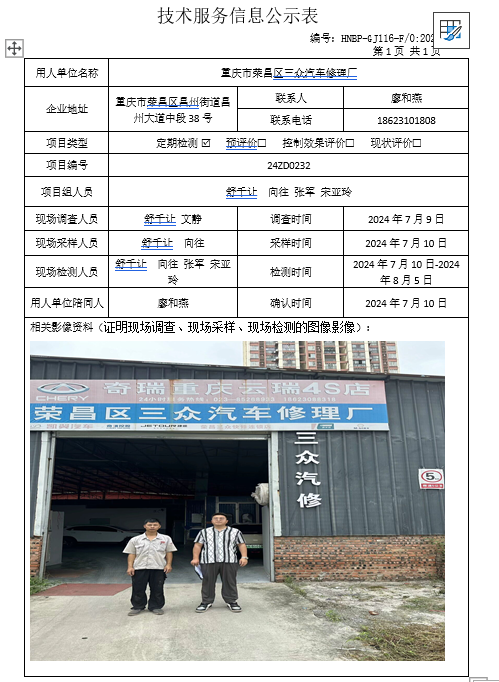 重慶市榮昌區(qū)三眾汽車修理廠定期檢測項目公示