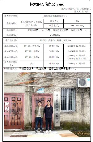重慶佳琦家具有限公司定期檢測項目公示