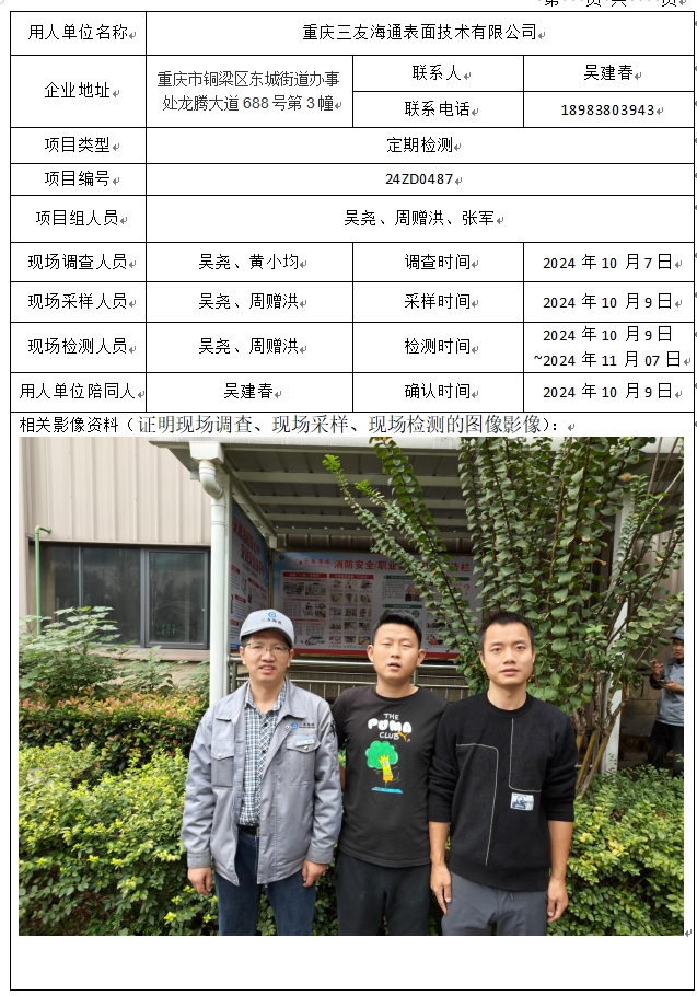 重慶三友海通表面技術(shù)有限公司定期檢測報告