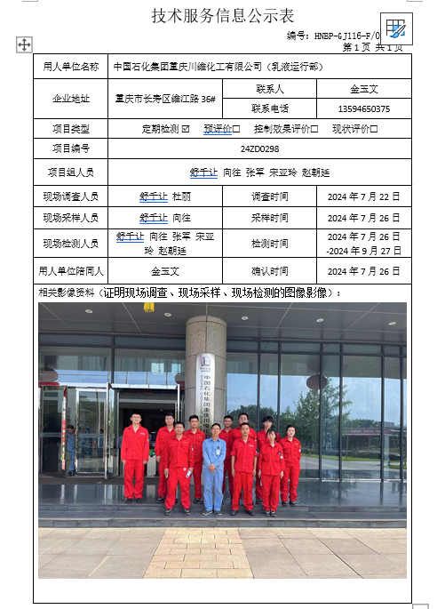 中國石化集團重慶川維化工有限公司(乳液運行部)定期檢測項目公示