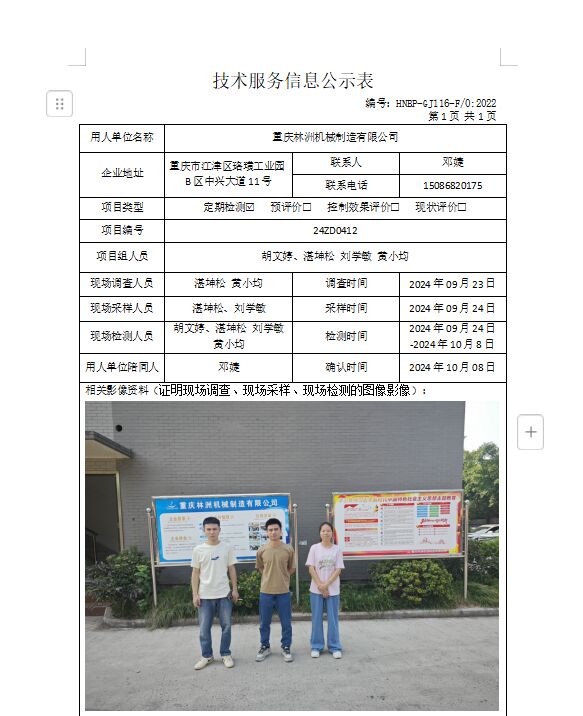 重慶極佳和汽車銷售服務(wù)有限公司定期檢測項...