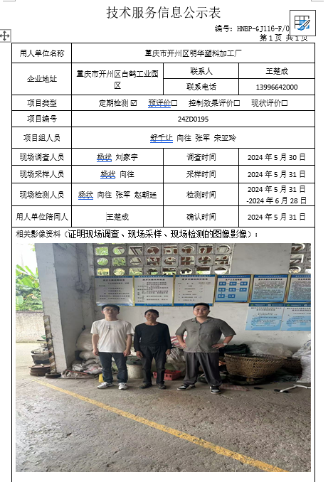 重慶市開州區(qū)明華塑料加工廠定期檢測項目公示