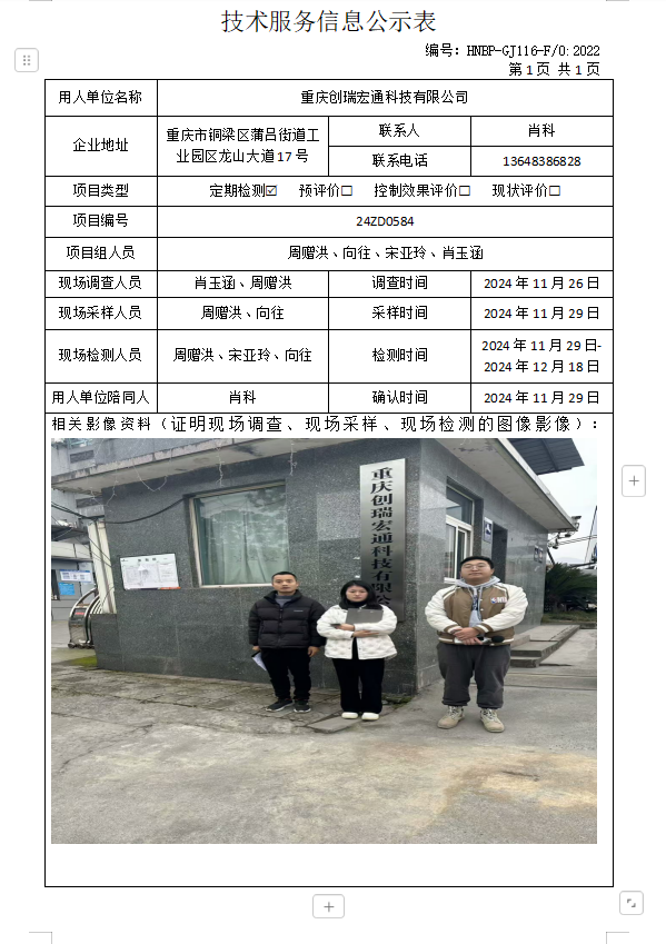 重慶創(chuàng)瑞宏通科技有限公司定期檢測項目公示