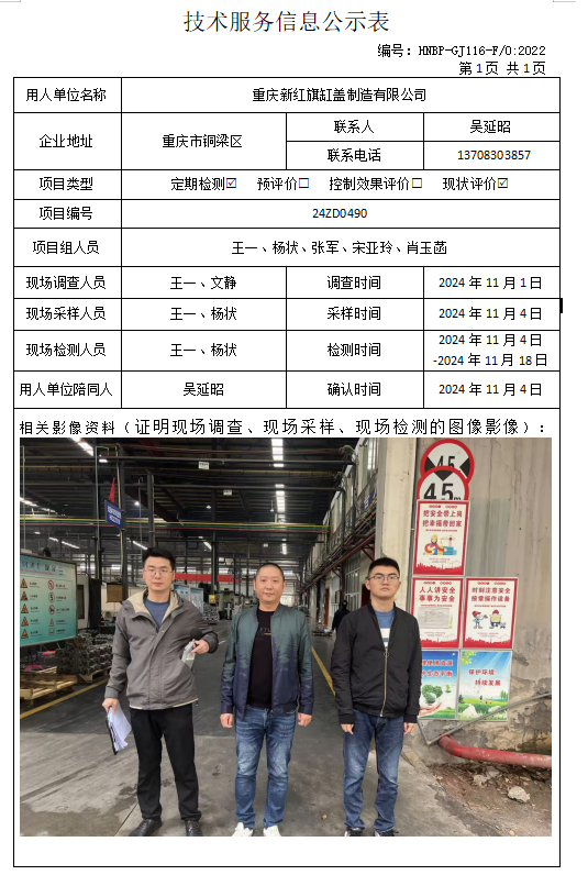 重慶榮爵科技有限公司定期檢測項目公示...