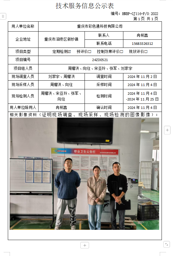 重慶市彩色通科技有限公司定期檢測(cè)項(xiàng)目公示